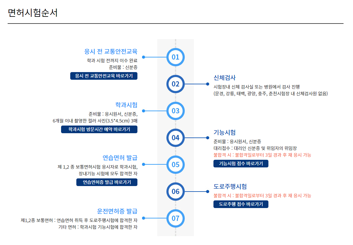 - 운전면허 시험장 또는 지정 교육기관 방문