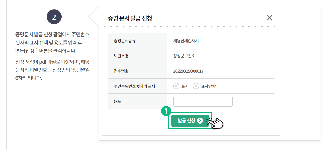 Q. 인터넷으로 보건증을 발급받으려면 어떻게 해야 하나요?