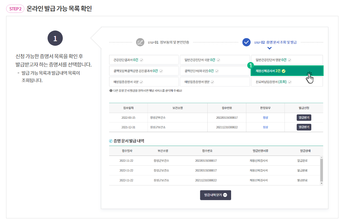 | 건강검진 결과 | 온라인 신청 | 유효기간 확인 |