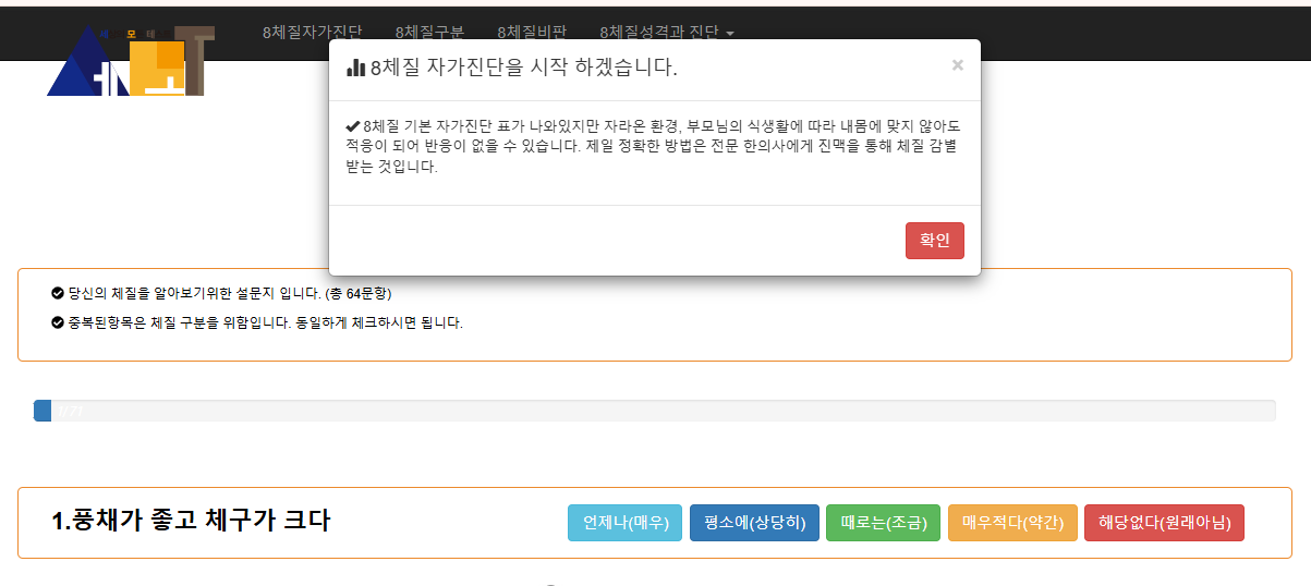 Q. 8체질 자가진단은 어떻게 시작하나요?