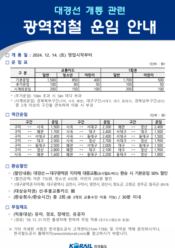 대경선 시간표 | 노선 | 개통 | 요금 | 시간 | 노선도 | 구미 | 교통카드 | 구미역 | 개통식