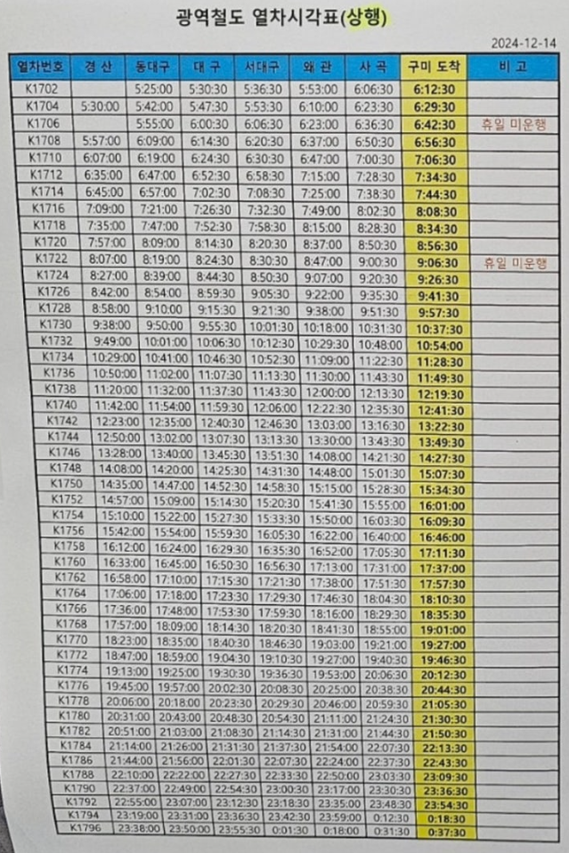 ⭐ 대경선의 주요 열차 시간표을 한눈에 파악하세요