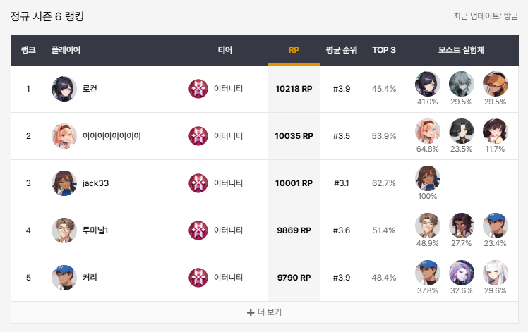 Q. 이터널 리턴에서 인기 있는 캐릭터는 무엇인가요?