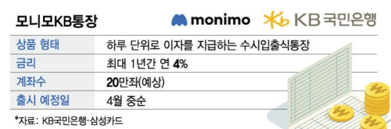 모니모 KB 매일이자 통장의 출시 일정