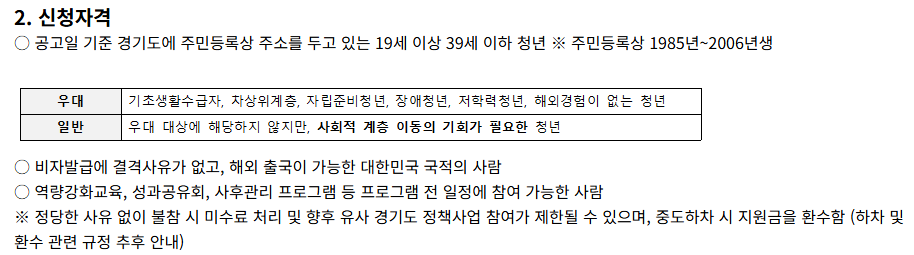 모집 대상은 경기도에 주민등록상 주소를 둔 19세부터 39세까지의 청년입니다. 총 340명 내외를 모집하며, 이들은 다양한 해외 대학에서 연수 기회를 가지게 됩니다.