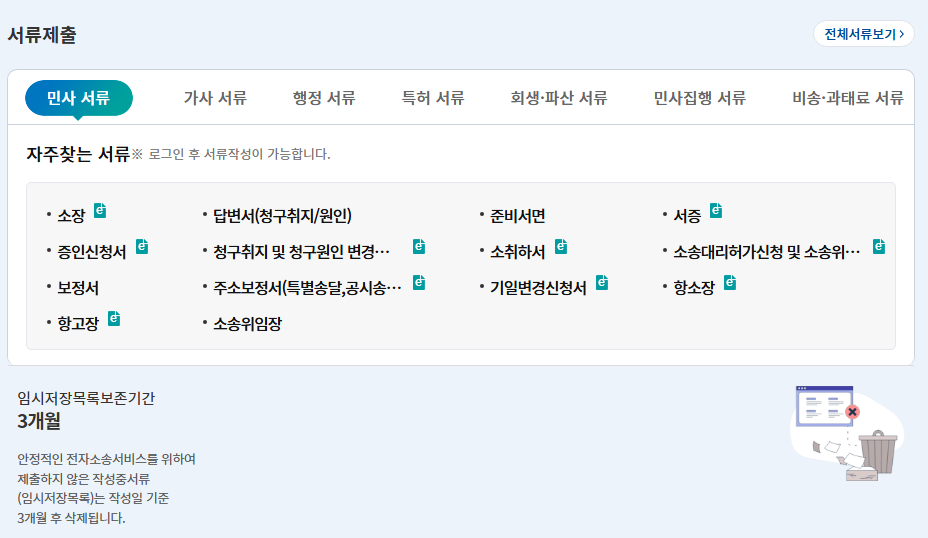 A. 소장, 준비서면 등 소송 서류를 전자적으로 제출합니다.