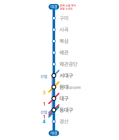 대경선은 여러 주요 역을 거쳐 경산역까지 운행됩니다. 주요 정차역으로는 동대구역, 서대구역, 왜관역, 구미역 등이 있습니다. 이러한 역들은 대구 지역 및 그 주변을 연결하며, 편리하게 다양한 목적지로 이동할 수 있는 기회를 제공합니다.