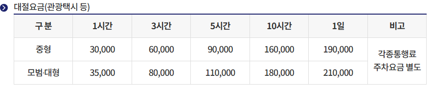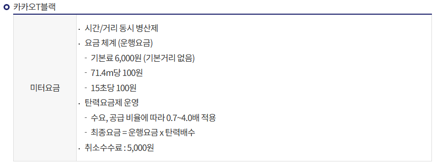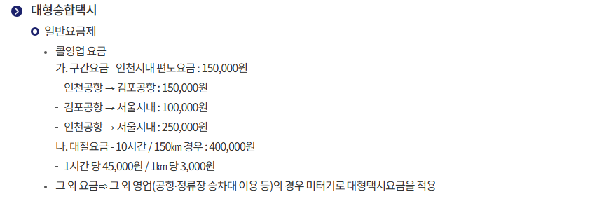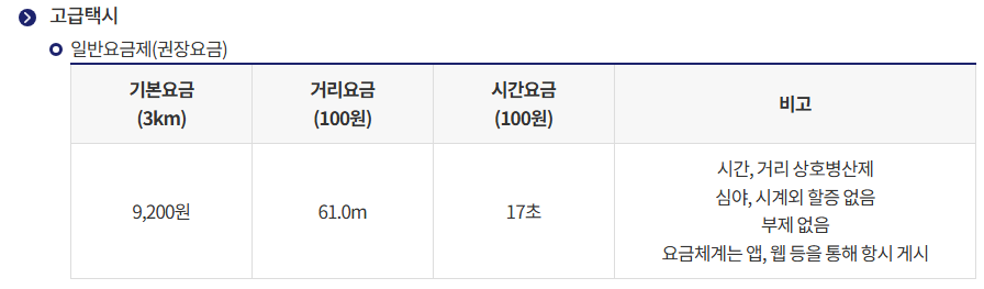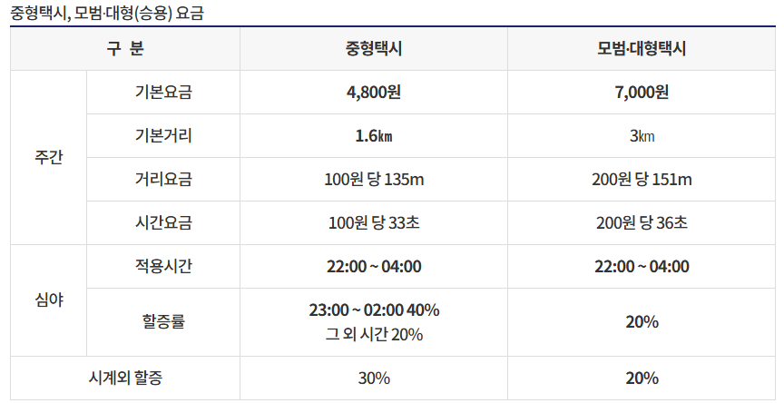 - 모범·대형 택시는 3km까지 기본 부과됩니다.