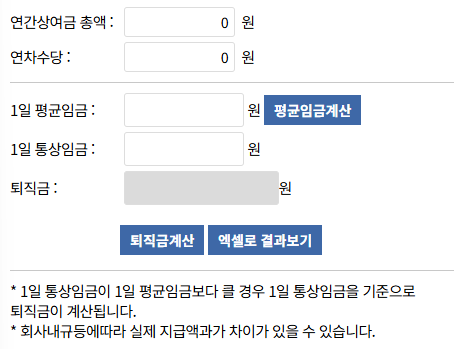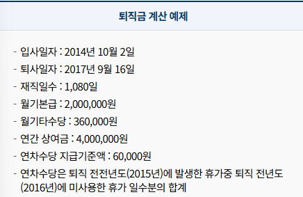 | 퇴직금 | 공식 대입 산출 | 결과 검토 |