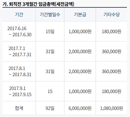 퇴직 전 3개월간 실제 수령한 총 임금 합계를 총일수로 나눕니다. 총 임금 합계에는 각종 수당과 상여금도 포함됩니다. 임금 기록과 영수증을 토대로 정확한 합계를 산출해야 합니다. 이 값을 공식의 평균임금 항목에 대입해 다음 단계를 준비합니다.