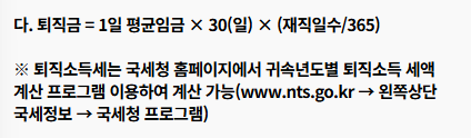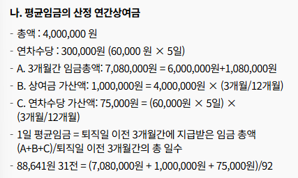 | 1일 평균임금 | 퇴직 전 3개월 총 임금 ÷ 총일수 | 임금명세서 합계 활용 |