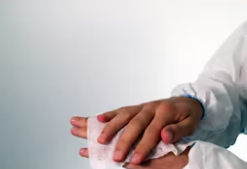 멸균 거즈나 드레싱으로 상처를 감싸 외부 균 침입을 막습니다.