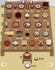 - 4열: 나물, 김치, 포, 식혜