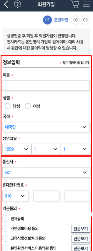 | 2단계 | 앱 실행 후 회원가입 | 본인명 휴대폰 인증 |