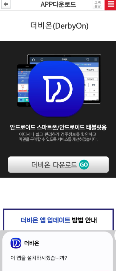 A. 더비온 앱은 구글 플레이스토어나 앱스토어에서 바로 검색되지 않을 수 있으며, 한국마사회 공식 홈페이지에서 제공하는 전용 설치 페이지나 QR코드를 통해 설치해야 합니다. 비공식 경로에서 내려받기하면 보안상 문제가 발생할 수 있으므로 반드시 공식 안내를 따르세요.