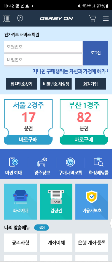- 경마공원 대면등록 완료 후 서비스 이용 가능