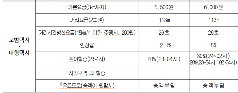 - 모범 및 대형Taxi도 동일 체계