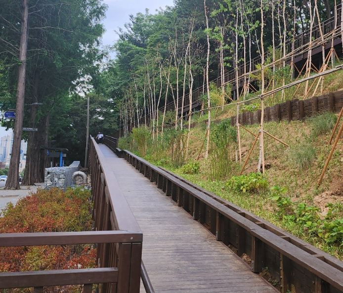 서초구 우면산 무장애 데크길은 최근 진입로 공사가 완료되어 접근이 용이해졌습니다. 작년 우면산 산사태 이후로 계속 공사 중이었으나 드디어 완공되었습니다. 무장애 데크길로 누구나 편하게 산책을 즐길 수 있습니다.