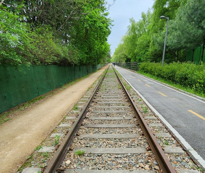 구로구 항동철길은 천왕역에서 내려 10분 정도 걸으면 도착합니다. 철길을 따라 걷다 보면 푸른수목원 사잇길이 나옵니다. 철길을 따라 계속 걷다 보면 수목원 주차장과 정문이 나오고, 그곳에 화장실과 카페도 있어 편리합니다. 자연 속에서 여유를 즐길 수 있는 곳입니다.