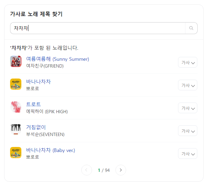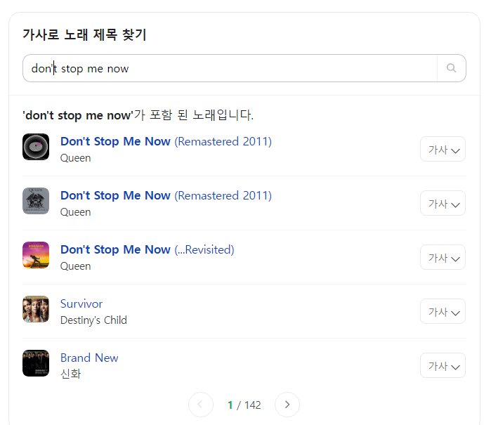 Q. 가사 일부만 알아도 노래 제목을 찾을 수 있나요?
