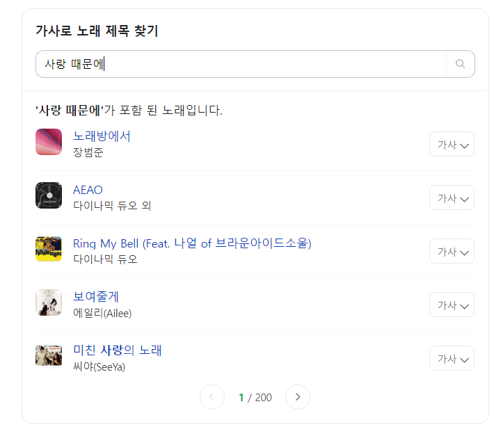 가사 검색의 실제 활용 예시