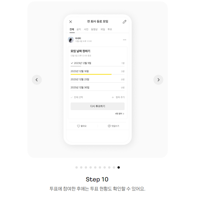 투표가 완료되면, 투표에 참여한 사람들의 의견을 쉽게 확인할 수 있습니다. 실시간으로 업데이트되는 결과는 채팅방에 참여한 모든 사람에게 공유됩니다. 또한, 마감 시간이 지나면 자동으로 투표가 종료됩니다. 이때, 채팅방 참가자들이 어떤 항목에 투표했는지 확인할 수 있습니다. 이러한 과정은 빠르고 투명한 의사결정을 돕습니다.