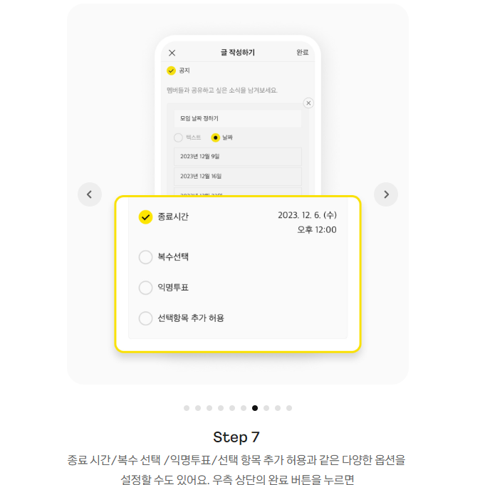 6. 모든 설정을 마친 후 ‘완료’를 눌러 투표를 게시합니다.