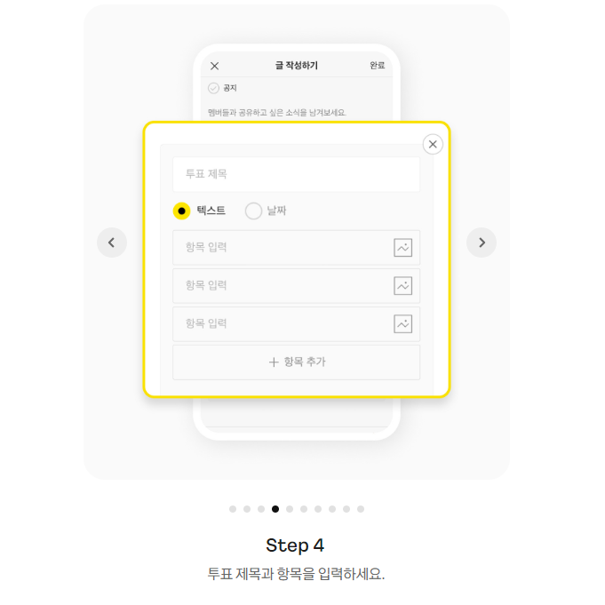 4. 투표 제목과 항목을 입력하고, 각 항목을 추가하려면 ‘항목 추가’ 버튼을 누릅니다.