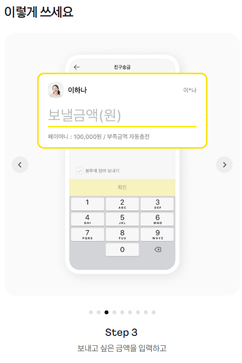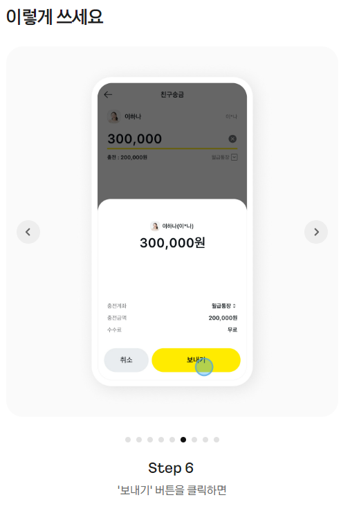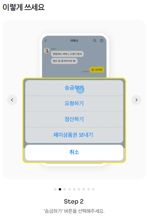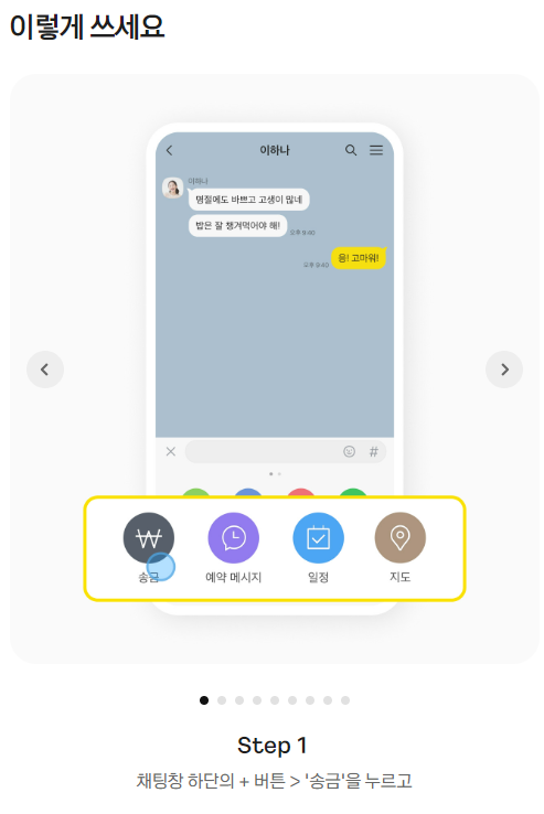 | 송금 기능 | 카카오톡 대화 중 간편하게 송금 | 금액 및 수신자 정보 확인 |