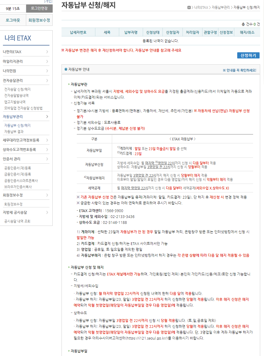 서울시 ETAX 홈페이지에서 수도요금 자동이체 신청하기