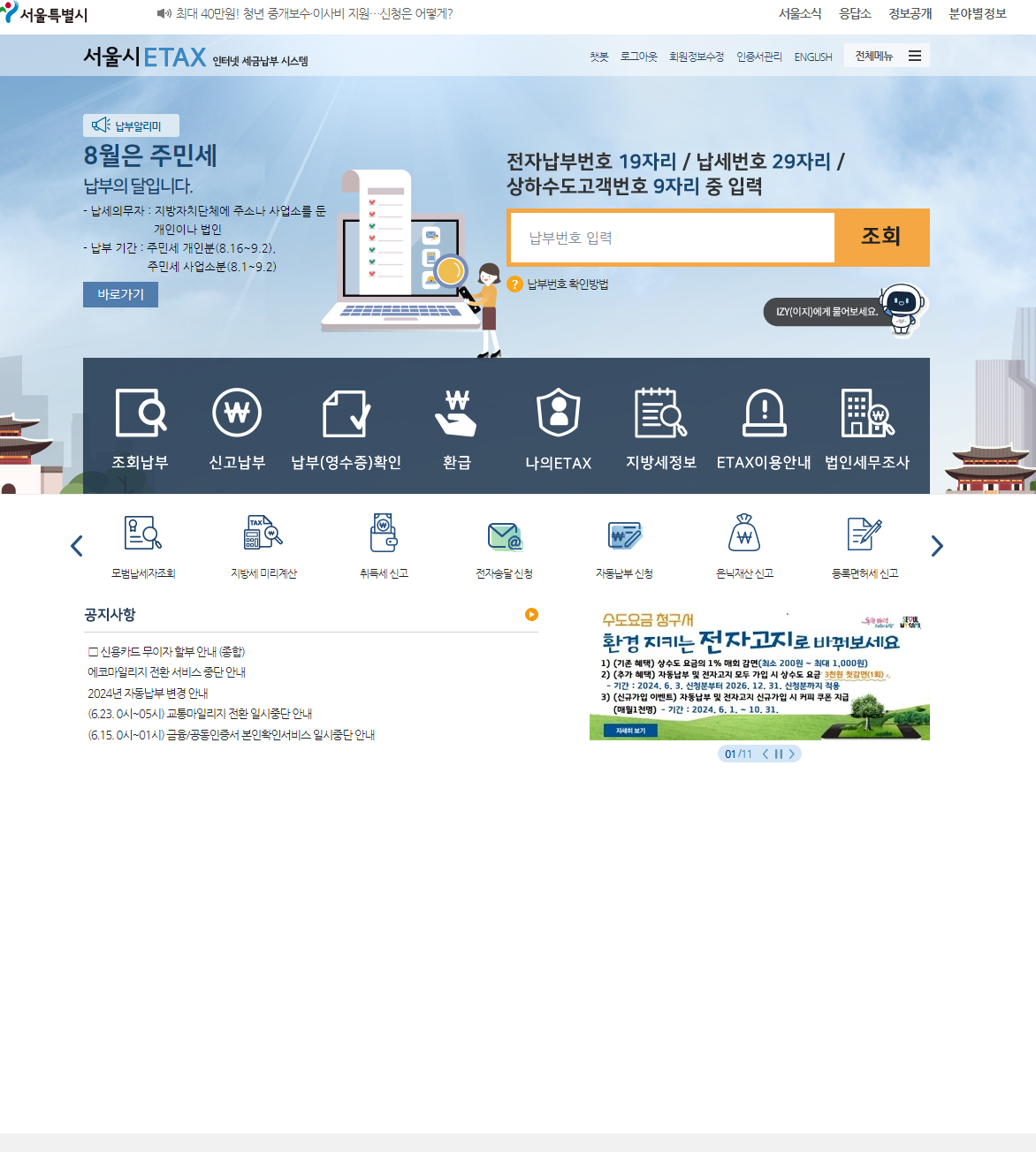 서울시 ETAX 홈페이지에 접속하는 방법에 대해 자세히 설명드립니다. ETAX 홈페이지는 서울시민이 각종 세금 및 요금을 온라인으로 간편하게 납부할 수 있는 포털입니다.