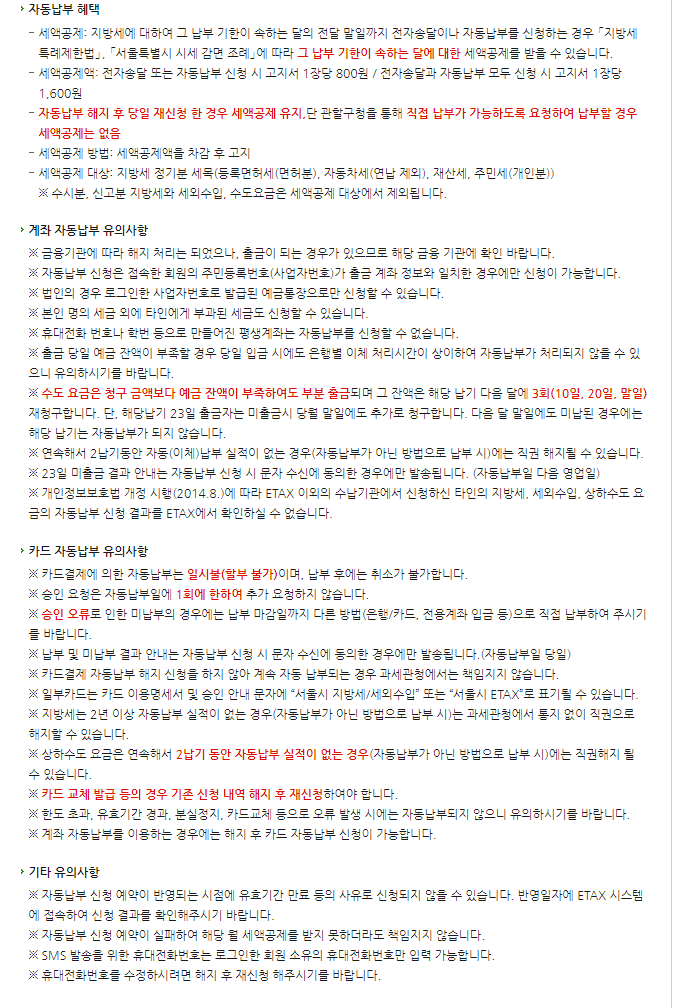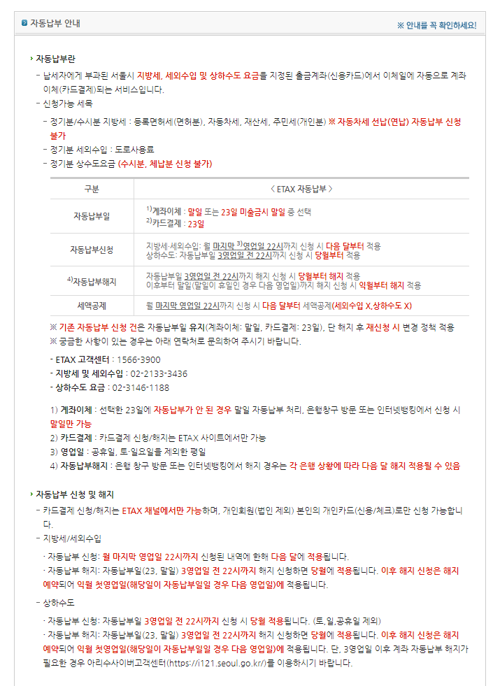 - 자동이체 신청 외에도 다양한 세금 납부 서비스가 제공됩니다.