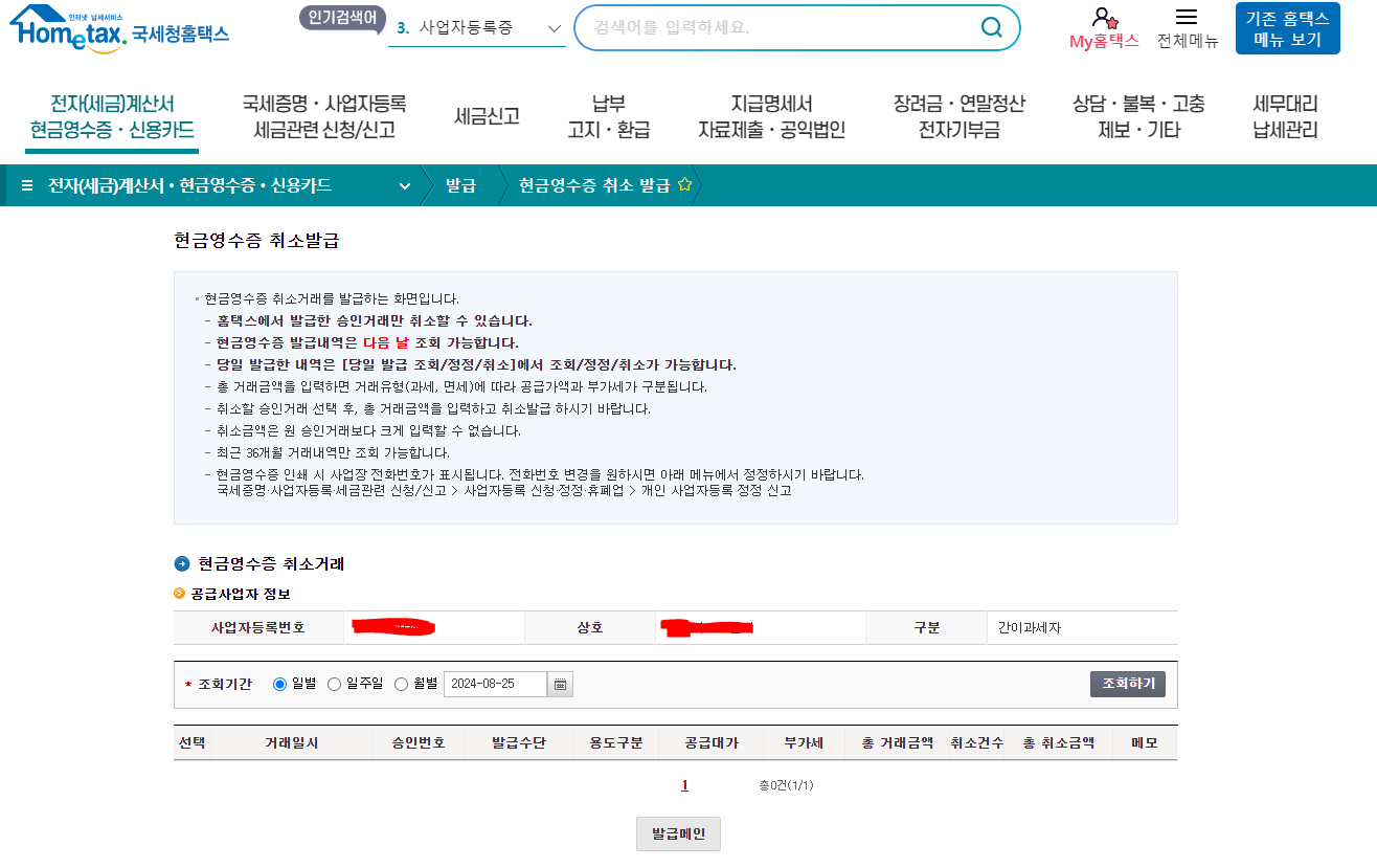 현금영수증 발급 취소를 위한 기본 절차