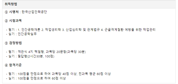인간공학기사 실기 시험은 주로 작업 환경 개선과 관련된 실무 능력을 평가합니다. 작업 자세 분석, 작업 환경 설계, 인체 측정 및 평가 방법 등의 내용을 포함하고 있습니다. 시험의 주요 구성 요소를 숙지하는 것이 중요합니다. 각 항목별로 필요한 지식을 체계적으로 정리하고, 실무 경험을 통해 실습을 병행하는 것이 효과적입니다. 실기 시험의 구성 요소를 제대로 이해하지 못하면 준비 과정에서 큰 어려움을 겪을 수 있습니다.