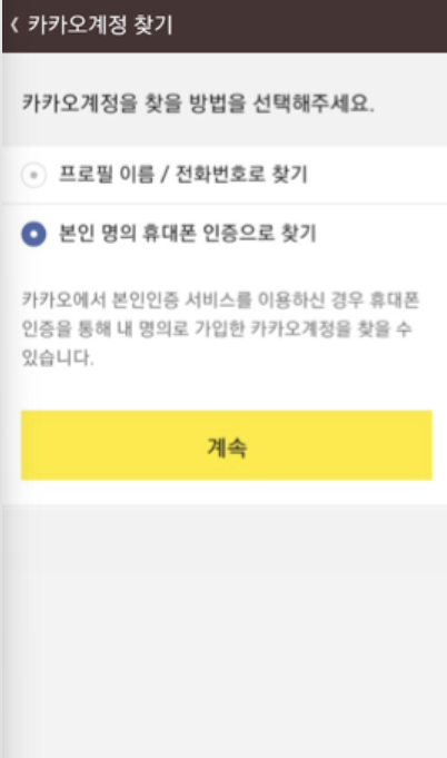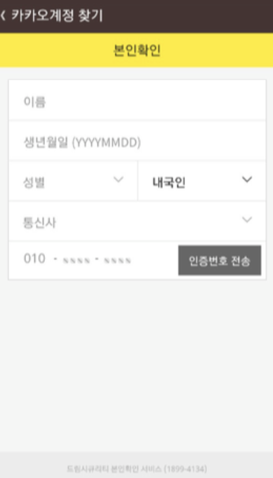 - 본인명의 휴대폰 본인인증으로 계정 찾기