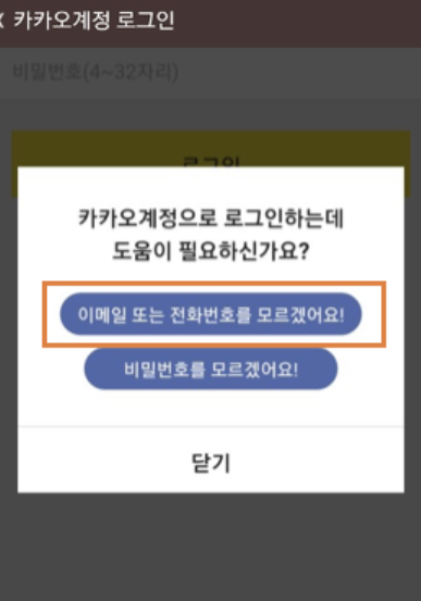 Q. 카카오계정을 찾을 수 없을 때 어떻게 하나요?